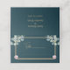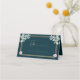 Guide your guests to their seats with these elegant folded place cards. Adorned with delicate eucalyptus leaves and a charming pink flower, these cards are both functional and decorative. The front features space to write the table number and manually enter the guest's name, while the back can be personalized with the names of the bride and groom and the event date. The goldish lettering and double frame add a touch of sophistication, while the warm dark green background with hints of blue sets an elegant tone for your wedding celebration.