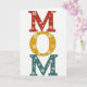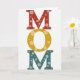 This card features the word “MOM” stacked vertically down the center, with large, thick letters that feel friendly and steady. The top “M” is a warm terracotta shade, the “O” beneath it is golden yellow, and the bottom “M” settles into a deep teal, creating a cozy, affectionate rhythm ❤️. Each letter is filled with a repeating floral pattern that softens the strong shapes, like a gentle hug captured in design. White-petaled daisies with small ochre centers scatter across the letters, alongside tiny star-like blossoms that add a quiet sparkle. The simple, light background leaves lots of breathing room, making the message feel like it’s being offered with calm care rather than shouted. There’s no extra wording competing for attention, so the stacked “MOM” reads clearly from top to bottom, like a sweet note left in plain sight 🌼. The flowers repeat across all three letters, with crisp white petals and warm yellow centers set against terracotta, golden yellow, and teal.