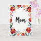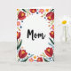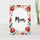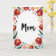 Designed with a bright garden border, this Mother’s Day card centers the word “Mom” in large, flowing black lettering on a crisp white background. Around it, ruby-red tulip-like flowers lean inward as if gathered close, giving the layout a gentle, affectionate feel ❤️. Soft yellow centers peek from the red petals, while smaller pink and golden blossoms fill gaps like friendly little nods between blooms. Tiny star-shaped blue flowers and slender blue fronds add light accents that keep the greenery from feeling too heavy. The foliage is layered in fresh greens, with stems and leaves curving to guide your eye back toward the middle. The text sits squarely in the center with plenty of open space, making the floral frame feel like a caring embrace 🌼. The border is made up of red, pink, yellow, and blue flowers nestled into green leaves all around the edges.