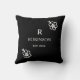 Floral Monogram Black & White Custom Initial Throw Pillow