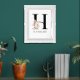 An elegant boho floral monogram with pink white florals and palmetto leaves framed poster. Add your monogram to your wall art home decor.