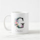 A graceful serif letter G surrounded by pastel watercolor flowers, designed in a delicate and artistic style. Personalize with a name for a lovely, custom keepsake.
