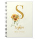 Boho chic modern elegant floral botanical monogram initial personalized notebook with a pretty watercolor bright yellow burnt orange sunflower and sage green greenery bouquet. ++++++++++ A cute keepsake gift for her girl, bride, bridesmaid, mother, daughter, sister, or best friend on a birthday, anniversary, Christmas, bridal shower, Sweet Sixteen, Mother's Day.