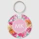 Girly key ring with monogram features watercolor pattern and pink and white monogram.