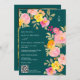 Floral monogram Qr code photo deep teal wedding Invitation