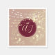 Elegant, rustic, boho chic, rose gold and burgundy wedding napkins with monogram - initials of bride and groom, gilded floral lace, string lights and modern calligraphy script.