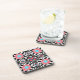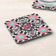 Floral Moroccan Tile, Black, White and Coral Pink Beverage Coaster