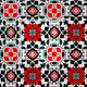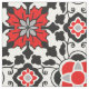Floral Moroccan Tile, Deep Red, Black and White Fabric