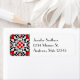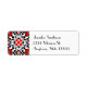 Labels in an Art Deco Moroccan tile pattern based on stylized flowers and leaves - deep Chinese red with classic black and white, accented with silver gray / grey - customizable