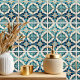 Bring a touch of global elegance to your space with this stunning geometric pattern in shades of teal, gold and white, inspired by traditional Moroccan and Mediterranean tiles. The intricate ceramic tile design showcases symmetrical shapes and ornate details, evoking the rich history and artistic craftsmanship of these regions. Whether used in home decor, party supplies, or personalized gifts, this pattern adds a sophisticated, worldly charm. The design is part of an exclusive collection, perfect for anyone looking to infuse their home or events with timeless beauty. Search ID1078 to see other products in this unique design set. Note: design adapted from generative content.