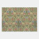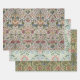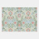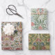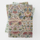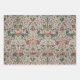 The three wrapping paper sheets are Morris patterns by William Morris (1834 – 1896) and John Henry Dearle (1859 – 1932), all of them from before 1918, now in the public domain: "Lodden" (or "Loddon", from 1884), "Persian" and "Brocade". All of them are floral patterns on light, white or yellow background, with red and blue flowers and green leaves.