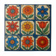 Add a burst of color and timeless charm to any space with this decorative tile. Inspired by traditional folk art and hand-painted motifs, this tile features a symmetrical 3x3 grid of bold and lively flowers in radiant reds, sunny yellows, and deep blues, each framed by classic blue borders with ornamental corner accents. The intricate floral designs, set against a warm cream background, evoke a sense of handcrafted elegance and natural beauty. Perfect for use as a wall accent, kitchen backsplash, tabletop inlay, or standalone art piece, this tile brings warmth, cheer, and artistic flair to any home décor style. Let each flower tell its own story and infuse your home with a touch of joyful artistry. A stunning piece that brings the warmth and charm of traditional Mexican artistry into your home. This exquisite tile features a captivating grid of nine individual floral designs, each bursting with rich, hand-painted colors. Inspired by classic Talavera and Cenzontle folk art, the collection showcases a delightful variety of stylized flowers. The corners of the blue frame are adorned with delicate blue flourishes, adding to the tile's intricate charm. The background of each tile is a soft, creamy beige, allowing the vivid colors to truly pop.