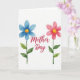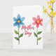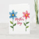 Designed with two stylized flowers, the card sets a gentle, affectionate scene that feels like a quiet hug ❤️. A luminous blue bloom stands on the left while a soft pink bloom mirrors it on the right, and their petals seem to lean toward each other like close friends sharing a moment. Slender green stems rise from the bottom with a few simple leaves, guiding your eyes inward. Centered between the stems, the text “Mother Day” sits in flowing red lettering, acting as the focal point without overpowering the artwork. The white background leaves plenty of open space, making the watercolor-like washes and soft blends in each petal easy to notice. Each flower has a dotted yellow-orange center that adds a sunny touch 🌼. The greens vary slightly from leaf to leaf, giving the foliage a natural, brushed look. The blue flower shows gentle gradients from pale sky tones to deeper blue near the center, while the pink flower shifts from blush edges to warmer pink closer in.