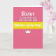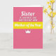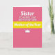 This card features a fuchsia-pink background that feels lively and affectionate, like a big sisterly hug ❤️. At the top, the word “Sister” sits centered in a flowing, cursive-style lettering, lightly shaded to give it a gentle lifted look. Just below it, a smaller all-caps line reads “IT’S MOTHER’S DAY AND YOU HAVE WON” in a straightforward sans-serif style, keeping the message clear and celebratory. Across the middle, a wide sunshine-yellow band stretches horizontally, creating a spotlight effect that draws your eyes in. Centered on that band, “Mother of the Year” appears in large white uppercase letters, standing out sharply against the yellow. Near the bottom, a white crown icon adds a sweet, admiring touch, like a friendly nod of respect between close family members 🌼. The crown is drawn with simple outlines and a soft shadow, resting against the bright pink field.