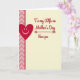 Designed with a soft, creamy yellow background, this card keeps the scene calm and glowing while still feeling affectionate ❤️. Along the left edge, a tall vertical strip shows a subtle chevron pattern that alternates between blush and rose pink, adding gentle texture. Near that patterned border sits a large red heart, and its tiny white curved eyes and small smiling mouth give it a friendly, companionable look. In the center area, a flowing crimson message is arranged in multiple lines, creating the sense of a love note set carefully on the page. A key phrase in the middle is emphasized by two slim red arrows pointing inward from each side, like a quiet nudge to linger there. Beneath it, a shorter line in the same red ink finishes the message, balancing the layout without crowding the space 🌼. The left chevron band stays blush-and-rose from top to bottom, with the smiling red heart placed near the middle of that strip.