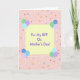 Designed with a soft yellow square at the center, this Mother’s Day card draws your eye with a gentle white dashed border framing the message. Inside the square, purple text reads “For My BFF On Mother’s Day!” with “BFF” standing out as the friendly focal point. The background is blush pink, sprinkled with confetti-like dots and tiny shapes that feel like a shared laugh between close friends ❤️. In each corner of the yellow square, three balloons float together, suggesting a sweet, supportive bond as if they’re lifting the message up for someone special. The balloons come in pastel mint green, pale sky blue, and light lavender, adding a calm contrast to the warm center. The main text sits centered within the square, with the purple lettering clearly separated from the pink backdrop for easy reading. Around the edges, the confetti scatters lightly while the balloon clusters sit neatly at all four corners 🌼.