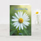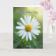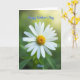 This card features a close-up of a white, daisy-like flower centered so it immediately draws the eye. Dozens of slim petals fan outward from a textured golden-yellow center, and the tiny lines on each petal add a soft, intimate detail that feels like a quiet “thinking of you” ❤️. Light spills in from the upper right, giving the petals a gentle glow and making the center look warm and sunlit. Behind the bloom, the background fades into a blurred wash of leafy greens, with brighter and darker patches that suggest foliage in daylight. Blue lettering sits above and below the flower, arranged to frame the bloom without covering it. The letterforms look like casual handwriting, adding a friendly, affectionate tone as if the note was written just for one special person 🌼. The golden center appears densely dotted, while the surrounding green backdrop stays softly out of focus.