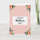Designed with a soft blush-pink background and gentle, diffused lighting, this Mother’s Day card sets a calm, affectionate mood ❤️. In the center, a crisp white rectangular frame with a thin pale-peach outline draws the eye like a quiet spotlight. Inside the frame, the words “HAPPY” and “DAY” appear in a clear sans-serif style, while “Mother’s” is written in flowing cursive, creating a tender contrast that feels like a warm embrace. The text sits neatly centered, with the darker lettering standing out against the white space for easy reading. In each corner, delicate botanical clusters add romance through detail, like flowers arranged with care by someone who truly knows her. Soft peach roses with watercolor-like petals mingle with deep emerald leaves and slender sprigs, giving the design a gentle garden feel 🌼. The four floral corners mirror one another, with rose blooms angled inward toward the central frame and leafy greens fanning outward against the pink backdrop. Share these Mother’s Day sentiments with someone special.