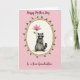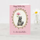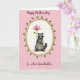 This card shows a gentle forest animal with a masked face and striped tail, sitting calmly inside an oval frame on a soft pastel pink background ❤️. A curling vine with small green leaves wraps around the oval, adding a quiet, cozy garden feel. The animal lifts a single flower with pink petals and a slim green stem, like a shy offering to someone special. Soft, diffused lighting makes the fur texture look tender and inviting, and the creature’s relaxed pose suggests warm affection. A slightly textured golden rim lines the inner edge of the oval, giving the center a subtle glow. Above the framed scene, a short message appears in a rich berry color, centered near the top. Below the oval, a second line of the same berry-colored lettering sits centered, balancing the layout with a gentle, caring tone 🌼. The vine’s leaves are spaced evenly around the oval, with the flower held upright near the middle of the frame.