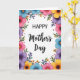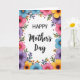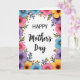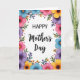 This greeting card features the centered text “HAPPY Mother’s Day” on a white background, with “HAPPY” in a thick, simple uppercase style and “Mother’s Day” in a flowing cursive look beneath it. A ring of flowers and leaves wraps around the words like a gentle hug, giving the layout a close, affectionate feel ❤️. The floral border mixes soft blues, bright pinks, purples, and sunny yellows, with layered petals and shading that make each bloom feel slightly raised. Green leaves and small yellow buds fill the gaps, guiding your eye around the circle and back to the message. The main text is dark for strong contrast, while the surrounding colors add warmth and a friendly, caring tone 🌼. Small red, berry-like dots are sprinkled through the wreath, adding tiny sparks of color among the petals and foliage. The flowers form an even oval frame, with the densest clusters near the corners and lighter sprigs along the sides.