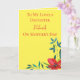 A beautiful Mother's Day card for your daughter, this design features a yellow background and blue and red floral design. With a beautiful message inside, order yours today.