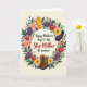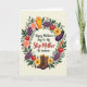 Designed with a circular botanical wreath, the card places a short Mother’s Day message right in the center, surrounded by garden details that feel like a gentle thank-you ❤️. Dark green leaves form the ring, dotted with soft pink flowers and sunny yellow blooms that suggest a cared-for backyard plot. Inside the wreath sit small illustrations of produce—deep purple grape clusters, red tomatoes, a purple eggplant, and an orange carrot—arranged as if they were gathered with affection. A pair of sturdy brown boots and a single yellow gardening glove appear among the plants, hinting at someone’s steady, loving work in the soil 👩. Tiny red berries are sprinkled around the circle, adding little sparks of color between the leaves. The main text is centered and easy to read, set in a dark tone that stands out against the light, creamy background. The lettering sits neatly within the open space of the wreath, with the greenery and vegetables evenly balanced around it. The background stays pale and smooth, making the greens, reds, purples, and yellows look bright against the soft cream.
