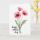 This card features a delicate botanical illustration of three blooming flowers, their layered petals shifting from deep fuchsia near the centers to a pale blush along the ruffled edges. Slender emerald-green stems cross and lean toward one another, and the sparse, tapered leaves seem to reach out like close friends in a gentle embrace ❤️. A bright white background keeps the focus on the blooms, making the pinks and greens stand out with a light, airy feel. The arrangement has a quiet romantic tone, as if the blossoms are leaning in to share a private moment. In the lower-left area, a short message appears in flowing lettering, set in a dark ink color that contrasts clearly against the white space. The text sits low and slightly to the side, leaving the center open so the flowers remain the main focus. Subtle texture in the darker flower centers adds depth, while the soft edges of the petals keep everything tender and calm 🌼. The three blossoms sit clustered near the middle, with their stems curving downward and slightly to the right.