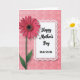 This card shows a tender composition where a large pink flower leans in toward a white message panel, like a quiet romantic gesture between old friends ❤️. On the left, a fuchsia bloom spreads wide petals around a dark center that shifts into warm reddish-brown texture, supported by a slim green stem with two pointed leaves. To the right sits a bright white rectangle with a scalloped, lace-like edge that gives it a gentle, vintage feel. Across the upper middle of the white panel, the main message appears in flowing cursive-style lettering in a dark ink. Beneath it, a smaller line of uppercase text is centered and spaced neatly, also in a darker tone, like a calm signature. The background is a soft rosy pink with a subtle repeating pattern, adding depth without pulling attention away from the flower and card 🌼. Light shadows under both elements make them look slightly lifted from the patterned surface, with the scalloped border casting the crispest outline.