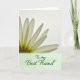 This greeting card features a close-up of a white-petaled flower, with petals sweeping from the lower left toward the upper edge as if leaning in for a gentle hello ❤️. A bright, airy background glows behind the bloom, letting light shine through the petals and reveal their soft, pearly texture. The center is a lively lime-green circle sprinkled with darker specks, adding a fresh contrast that feels like a shared laugh between close friends 🌼. Along the bottom, a wide horizontal band in pale pastel green grounds the design and makes room for the message. The words “To my Best Friend” sit centered on that band in dark green, flowing cursive-style lettering with a faint shadow for depth. The mix of glowing petals above and the grounded text below creates a quiet, affectionate balance, like two friends who simply understand each other without saying much. The flower’s white petals arc across the top while the pastel green band spans the lower section with the dark green phrase clearly readable in the middle.