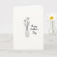 Designed with two simple five-petaled flowers as the focus, this card shows their long leaves and slender stems gathered closely in a small vase, like a gentle bouquet offered with care ❤️. A tiny ribbon ties the stems together, adding a sweet detail that suggests someone took time to make it look just right. The drawing uses thin black lines on a white background, keeping the scene calm and uncluttered. Plenty of open space surrounds the vase, letting the flowers feel like they’re standing quietly on their own, the way a thoughtful moment lingers. To the right of the illustration, the words “Happy Mother’s Day” appear in flowing black lettering, balanced so the text feels like it’s leaning in toward the bouquet 🌼. The placement creates a soft connection between the message and the flowers, like a warm glance shared across the page. The vase is lightly outlined and centered, with the tied ribbon sitting just above it where the stems meet.