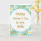 This greeting card features a soft pastel turquoise background that feels like a calm spring morning, with white-petaled flowers and sunny yellow centers scattered around like little reminders of care 🌼. In the middle sits a smooth white oval that draws your eye in, outlined by a thin double border in a gentle aquamarine tone. Inside the oval, a Mother’s Day message is centered and set in golden lettering with a subtle light-to-dark fade that gives it a warm glow ❤️. The floral accents around the oval are linked by slender curling vines and small stylized leaves, creating the sense of a quiet embrace wrapping the message. Golden-brown stems and leaf details add warmth against the cool background, like a tender contrast between steady support and fresh air. The layout keeps the main words easy to read while the flowers frame the space without crowding it. Along the edges, the white blossoms and golden-brown vines form a light border around the central oval.