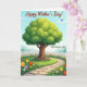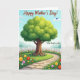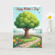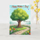 Designed with a peaceful garden scene, this card centers on a large, mature tree with a wide canopy of layered green leaves that feels like a gentle shelter. A curved stone path starts at the bottom and leads inward, as if inviting two close friends to stroll side by side with an easy, caring closeness ❤️. Bright flowers in yellow, red, orange, purple, and white spread across an emerald lawn, creating little pockets of color around the path. A white picket fence runs along the back, separating the garden from soft, distant greenery under a light blue sky with a few pale clouds. Near the top, “Happy Mother’s Day!” appears in warm-toned lettering, while “To My Daughter-in-Law” sits smaller and off to the side near the tree in a matching color. The overall layout keeps the text high and open, leaving the garden to carry a gentle, affectionate mood 🌼. A single blue bird glides across the upper sky above the tree’s crown.