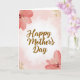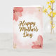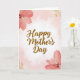 Designed with a soft pastel backdrop, this card features a gentle pink-to-white gradient that draws your eye toward the glowing center. In the middle, the words “Happy Mother’s Day” appear in shiny golden lettering with a lightly metallic look, creating a tender, affectionate focus ❤️. Large blush and coral flowers bloom in the top-left and bottom-right corners, their translucent paint-like petals suggesting a quiet closeness and care. Curving golden decorative swirls fill the top-right and bottom-left areas, adding a soft sparkle that feels like a warm embrace. The layout feels balanced and calm, with the florals and gold accents framing the message like a loving hug shared between family or friends 🌼. The text sits centered and prominent, while the corner details stay slightly lighter so the greeting remains easy to read. Pale pink edges fade inward toward a bright white center, with coral petals and fine gold curls anchoring opposite corners.