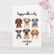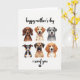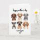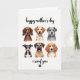 This card shows six dog portraits arranged in a neat two-by-three grid on a bright white background, each showing the head and upper chest in a smooth, graphic style. The dogs vary in look and mood, from a smooth-coated brown pup with soft, attentive eyes to a shaggy gray face with wiry whiskers and a friendly, spotted golden-toned dog smiling with a tongue just showing ❤️. Coat colors range through deep browns, warm tans, black-and-tan markings, and gentle grays, giving each portrait its own charm while still feeling connected. A quiet sense of friendship runs through their expressions, like they’re leaning toward you with trusting gazes and open-mouthed grins 🌼. At the top, a flowing black message sits centered above the grid, and at the bottom a second line of matching black text is centered beneath the portraits. A small paw print icon appears near the lower wording, adding a sweet visual accent without crowding the layout. The overall spacing is balanced, with even margins around the grid and crisp edges that keep the focus on the dogs’ faces. The background stays pure white, making the warm fur tones and the black lettering stand out clearly.