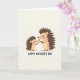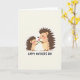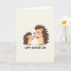 This design shows two friendly, human-like spiny creatures facing each other in a quiet, cozy scene that feels like a close bond between family or dear friends ❤️. The smaller one has soft brown quills, a peach-toned face, and rosy cheeks, and it looks up with a tender, trusting expression. It holds out a single pink flower with a green stem, offering it carefully as if sharing a sweet, private moment. The larger figure has similar warm tones and gentle blush, leaning down with a fond, appreciative gaze that reads like a warm hug without arms. A light, neutral background keeps the focus on the soft pastel colors and the rounded, non-sharp quill shapes. Near the bottom, a short celebratory message is centered in large, easy-to-read lettering in a dark tone, standing out clearly against the pale space 🌼. The pink blossom sits between them at chest height, angled upward toward the larger figure’s face.