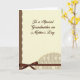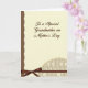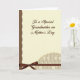 This card features a calm, softly lit layout with a large creamy beige center panel that resembles aged parchment, setting a gentle, affectionate tone ❤️. Centered on that panel is a flowing dark brown message honoring a mother, with the lettering slightly raised for a subtle dimensional look. Along the left side, a rich earthy brown strip adds contrast, separated from the beige area by a scalloped edge that feels like careful lace trim. The warm browns and creams sit together like a quiet embrace, giving the design a close, family-focused feel without needing extra imagery. Near the bottom, a deep chocolate satin ribbon runs horizontally and is tied into a neat, symmetrical bow, like a small gift waiting to be opened. Just beneath it, a patterned band is topped with another scalloped edge traced by a faint golden outline, adding a soft glow 🌼. The pattern shows repeating small five-petal cream flowers with bright yellow centers on a subtly textured background.