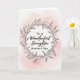 This greeting card centers on a gentle Mother’s Day message set inside a circular wreath of thin branches and small leaves, drawn with fine dark lines that feel calm and caring ❤️. The wreath forms a continuous ring, like a quiet embrace around the words, suggesting closeness without needing any characters on the page. The background is softly tinted with pale blush-rose washes that spread like light watercolor stains across textured paper, adding a tender, affectionate mood. The main text sits in the middle, with the larger words in a flowing cursive style and smaller supporting words in a simple print style for easy reading. The lettering appears in a deep gray or near-black tone, standing out clearly against the soft pink haze. The contrast between the crisp botanical outline and the airy color behind it creates a gentle, romantic calm, like a warm thank-you shared between family. A small 🌼 touch comes through in the natural leaf shapes and the soft, petal-like blush patches around the wreath. Behind the wreath, the blush tones fade outward in uneven, cloudlike spots on an off-white, lightly grained paper background.