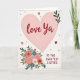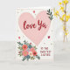 This card features a large blush-pink heart near the top, giving the layout a gentle, affectionate focus ❤️. Inside the heart, the words “love Ya” sit centered in deep crimson, drawn with smooth, flowing lettering that feels like a direct note to someone close. The background is soft off-white with a thin pale-pink border that lightly frames the whole scene. Scattered around the open space are small golden stars and tiny ruby-red hearts, adding a flirty, friendly sparkle without crowding the design 🌼. In the lower left corner, a stylized bouquet brings in romance through tender, garden-like details, with coral, dusty blue, soft rose, and creamy white blooms nestled together. Dark green leaves weave between the flowers, giving the cluster a cozy, connected look as if it was gathered for someone special. In the lower right, “TO THE SWEETEST SISTERS” appears in deep red, set in simple all-capital letters that balance the softer shapes above. The bouquet sits low on the left with layered petals and dark green foliage against the off-white background, while the small stars and hearts float lightly around the pink heart.
