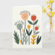Designed with a sweet botanical scene, the front shows five friendly flower faces grouped like close friends sharing a quiet moment ❤️. Each bloom has simple dot eyes and a curved smile, giving the cluster a tender, welcoming look. The petals mix soft peach, warm terracotta, gentle sage, and golden yellow on an off-white background. Thin black stems rise at different heights so the flowers feel like they’re leaning toward one another in an easy, affectionate way. Around the lower area, abstract leaves in deeper green and muted sage fill in the garden setting with soft shape and texture. There’s no large message in the center; any small wording would sit neatly near the top or bottom in a simple dark tone, leaving the artwork to speak first 🌼. Short, fine lines appear around a few flower heads like little rays, and the leaves cluster most densely near the base with a few reaching into the middle.