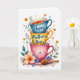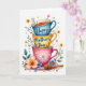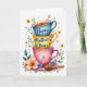 This design shows a tall, centered stack of three ceramic mugs arranged like a friendly totem, with a calm blue cup on top, a sunny yellow one in the middle, and a soft pink cup at the bottom. Green leaves and curling stems wrap around them, dotted with small flowers in orange, blue, and white that feel like they’re leaning in close together. The white background keeps everything airy, while gentle watercolor shading adds a cozy, tender look ❤️. A few tiny hearts and scattered speckles float around the stack, like quiet little notes passed between close friends. Short message text appears on the top two mugs in a thin, flowing style, set in a dark ink that stands out against the blue and yellow surfaces. The words sit centered on each mug’s front, leaving the floral details to frame them rather than cover them. A wooden honey dipper rests diagonally on the pink saucer at the base, with a small cluster of petals nearby 🌼.
