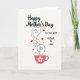 This greeting card features a soft off-white background that keeps the layout light and airy. Near the top, “Happy Mother’s Day” appears in deep charcoal lettering with smooth, flowing strokes, setting a gentle, affectionate tone ❤️. Just below, “TO THE BEST MOTHER IN LAW” is placed in a simpler, modern style in the same dark shade, centered and easy to read. Along the bottom sits a coral-pink cup or mug, giving the scene a cozy, welcoming feel. On the cup is a small white six-petal flower with a bright red dot in the center, like a tiny token of care 🌼. From the cup, thin gray curling lines rise like warm steam, and their soft curves feel like a quiet hug between loved ones. Scattered among the curls are small hearts in red and blush pink, floating upward in dotted trails above the cup.
