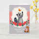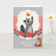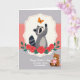 Designed with a sweet woodland scene, the card features a masked forest creature in soft browns, gazing upward with an outstretched paw as if reaching for a small orange butterfly. The creature sits inside a scalloped frame, giving the moment a tender, almost shared glance between new friends ❤️. Deep red roses and leafy green stems spill around the bottom, adding a romantic garden feel without crowding the main character. The background is creamy with a dashed pink border, and a soft coral band runs along the top edge for a gentle pop of color. Near the lower portion, a muted gray panel sets off a plush-style brown bear with round ears, posed as if offering a kind gesture to someone just out of view. The bear lifts a small pink sign that reads “LOVE” in simple lettering, with a tiny pink flower beside it 🌼. The butterfly hovers above the creature’s raised paw, and the roses cluster thickest along the lower left and right edges beneath the frame.