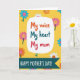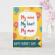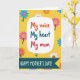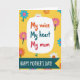 This card features a sunny yellow background with a soft white, rounded panel centered like a gentle spotlight for the message. On that white shape, the phrases “My voice,” “My heart,” and “My mum” are stacked in a casual hand-drawn look, alternating coral-red and deep teal for a warm, close-to-the-heart feel ❤️. The surrounding space is filled with simple flowers in sky blue, soft pink, orange, and white, and each bloom has a tiny smiling face that feels like a friendly chorus cheering her on 🌼. The flowers vary in size and spacing, creating the sense of a lively garden scene circling the words as if leaning in with affection. Along the bottom edge, a deep teal banner stretches across the card, grounding the bright background. Centered on that banner, “HAPPY MOTHER’S DAY!” appears in crisp white letters that stand out clearly against the dark strip. The overall layout keeps the message in the middle while the cheerful flowers frame it, with their smiling centers dotted evenly across the yellow field.