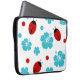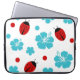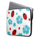 Cute laptop case in a sleeve printed with a fun floral nature pattern including ladybugs and hibiscus flowers. Designed for ladies or girls who collect or appreciate nature and wildlife designs.