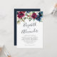 Floral Navy Blue Burgundy Elegant Script Wedding Invitation