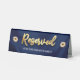 Floral Navy Blue Gold Script Wedding Reserved Seat Table Tent