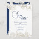 Floral Navy Blue Gold Wedding Save The Date Card