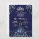 Floral Navy Blue Princess Silver Mis Quince Invitation