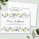 This floral moving announcement postcard is decorated with delicate watercolor flowers and foliage in pastel shades.