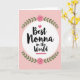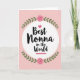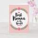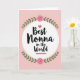 This greeting card features a soft pink background with a bright white oval at the center, giving the design a gentle, affectionate feel ❤️. Inside the oval, the main message reads “Best Nonna in the World” in flowing black lettering, arranged neatly to draw the eye inward. A small magenta heart sits above the first word like a sweet wink, adding a hint of closeness and warmth between giver and receiver. A thin magenta line underlines the last word, balancing the layout and making the message feel thoughtfully finished. Surrounding the oval is a leafy green wreath that curves around like a caring embrace, suggesting steady devotion and family closeness. Four pink roses appear at the top, bottom, left, and right of the wreath, their layered petals outlined in a deeper rose shade for soft definition 🌼. The roses and greenery sit evenly around the center, with the magenta accents standing out against the pale blush backdrop. The overall look shows a pale pink field, a central white oval with black text, a tiny magenta heart above the first word, and a magenta underline beneath the last word.
